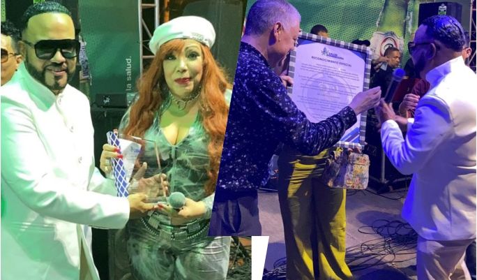 Junto a Vickiana también recibió similar mérito el presidente del Comité organizador de los festejos, Dr. Carlos Rosario, otorgados ambos por el CEO de Salud Dominicana Grupo Corporativo, Johan Rosario.