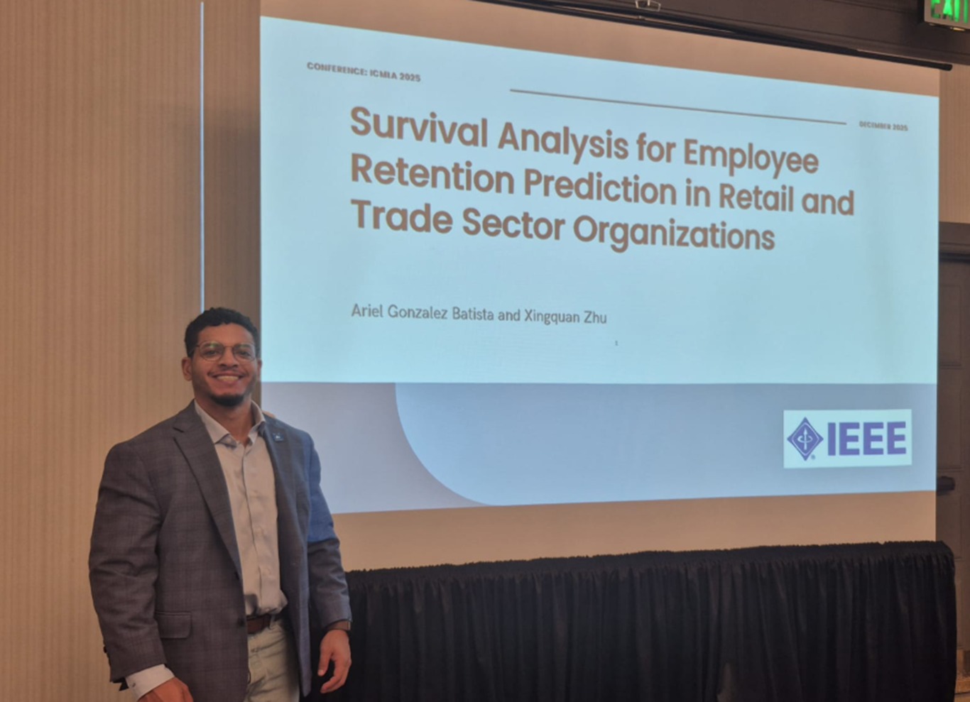 El ingeniero Ariel González Batista, egresado de la PUCMM y la FAU, presentó una investigación de vanguardia en el Simposio Mundial IEEE 2025 sobre Machine Learning y Computación (MLCM 2025), celebrado del 3 al 5 de diciembre en Estados Unidos.